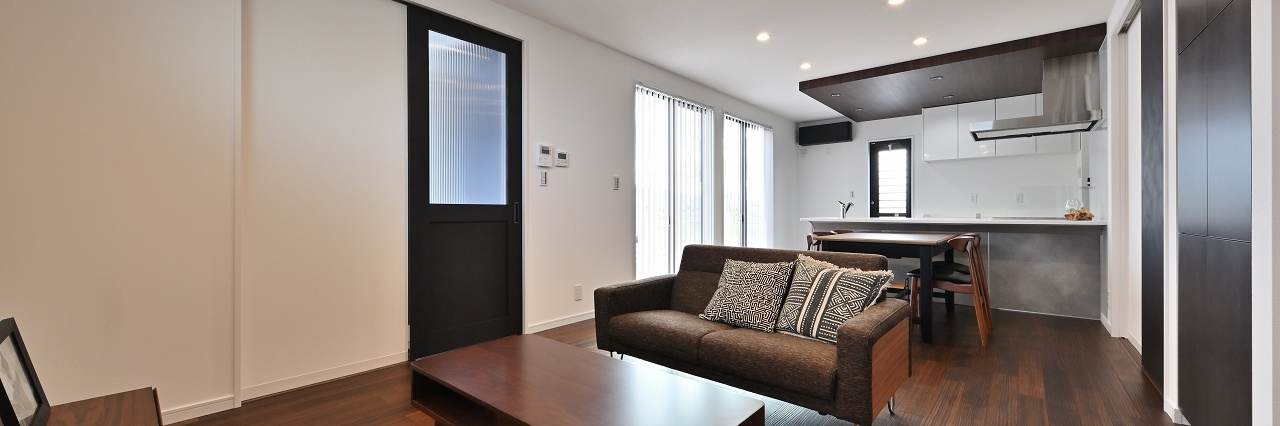 適材適所に備えた収納の美しさ。充実した収納量を確保しながら、人の視線から柔らかく隔てることもできるシューズクローク。家族が団らんの時間を過ごすリビングには、壁面を活用し、凹凸のないスッキリとした見た目と生活用品をまとめて収納できる実用性を兼ね備えた壁面収納が。奥さま用・旦那さま用として別々に使え、個人のプライベートにも配慮したママパパクローゼットを主寝室に完備。夏はひんやり心地いい木の質感を楽しみ、冬は床暖房との相乗効果が心身にやさしい無垢の床。上質な風合いと経年美が楽しめる、家族をつつみこむ木の住まい。