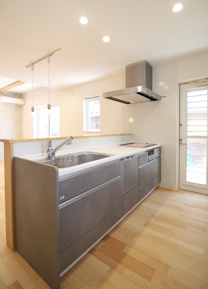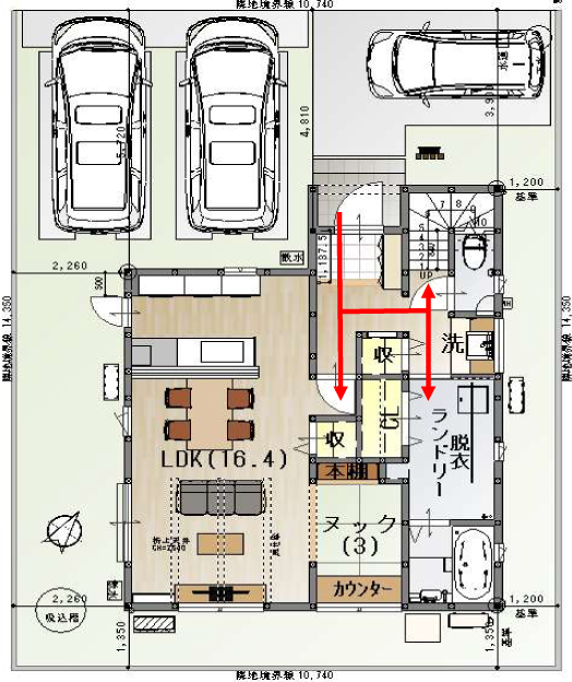LDK16.4帖+ヌック3帖 ヌックには、勉強ができるカウンター付き 駐車3台可能で来客時も安心