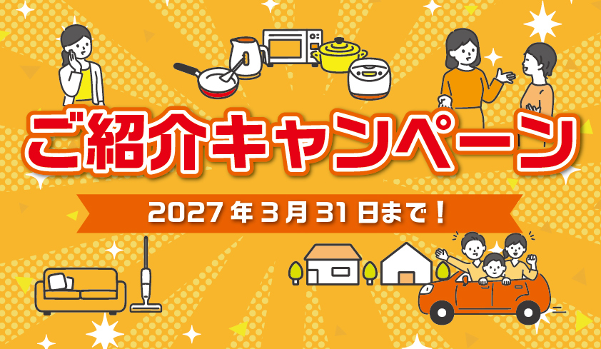 ※掲載しているご紹介キャンペーン各特典は新築住宅ご紹介・ご成約時の特典です。